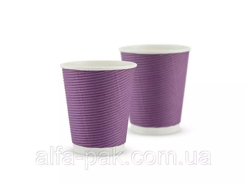 Стакан белый гофрированный лаванда F-волна горизонтальная, 180