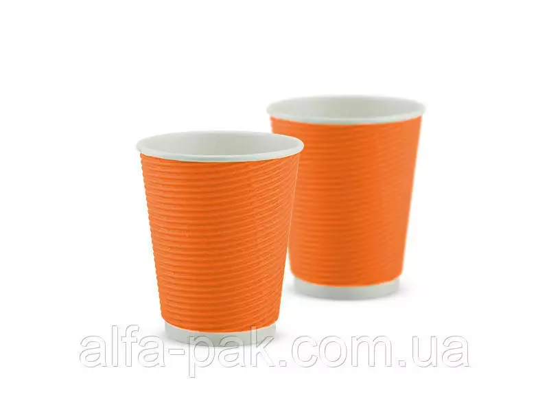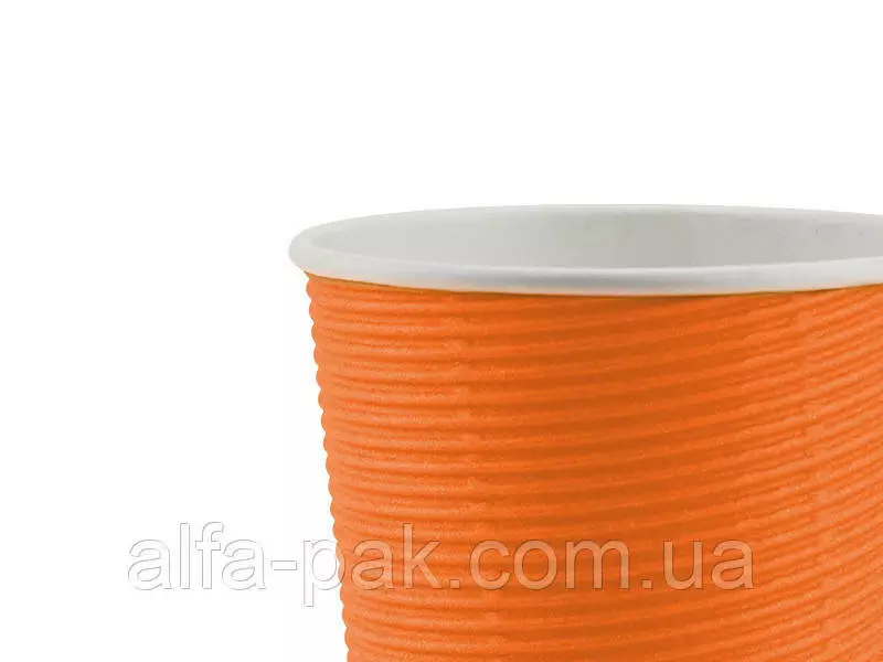 Стакан белый гофрированный оранжевый 180 мл F-волна горизонтальная