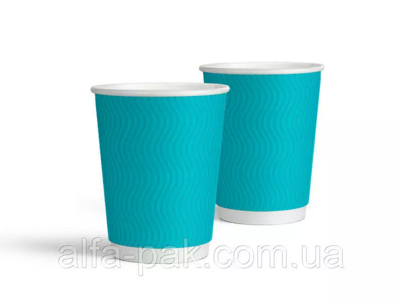 Стакан белый гофрированный бирюзовый 270 мл S-волна популярная тара