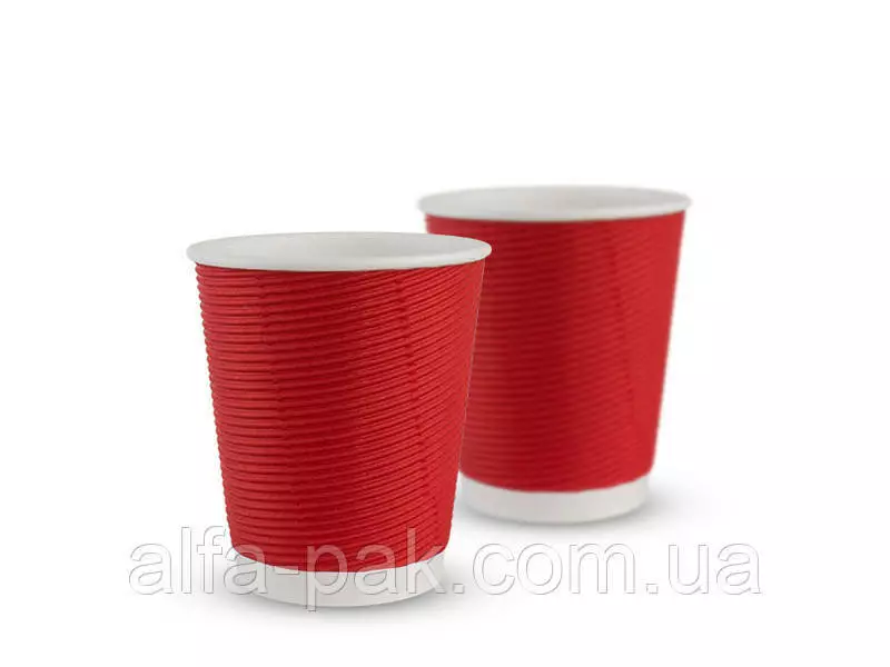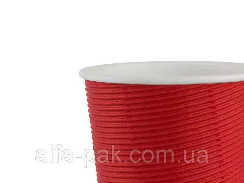 Стакан белый гофрированный красный F-волна горизонтальная, 270