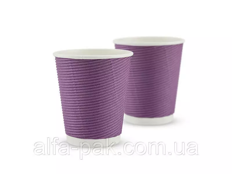 Стакан белый гофрированный лаванда F-волна горизонтальная, 270