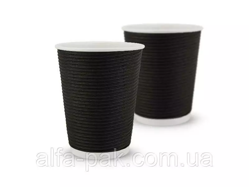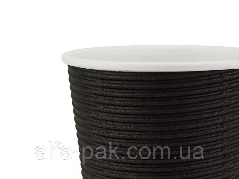 Стакан белый гофрированный черный 340 мл F-волна горизонтальная