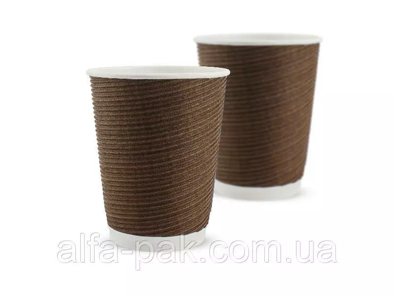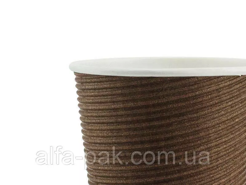 Стакан белый гофрированный коричневый 340 мл F-волна горизонтальная