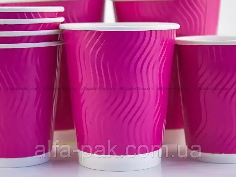 Стакан гофрированный 340 мл "Кукольный розовый" S-ВОЛНА популярная