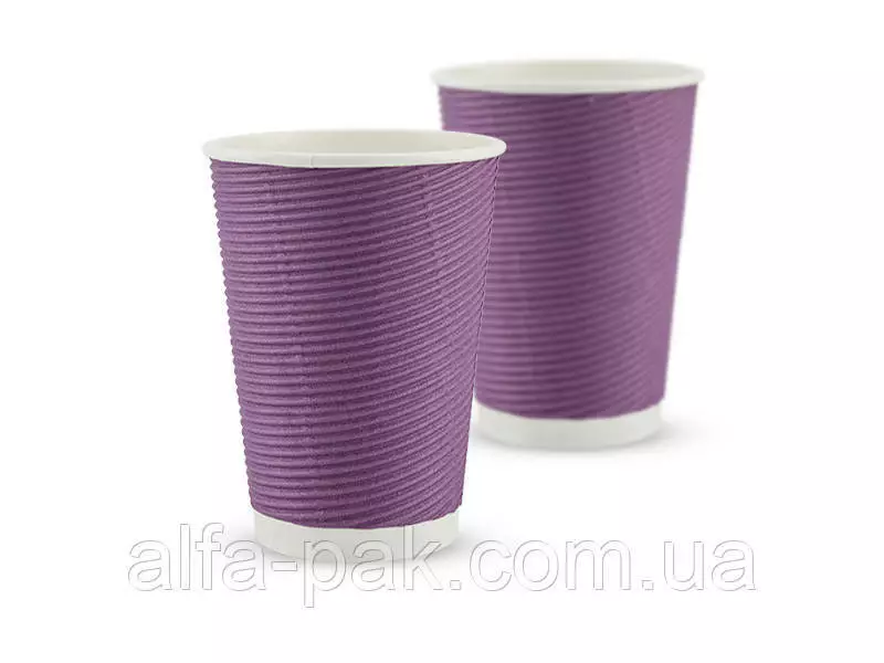 Стакан белый гофрированный лаванда F-волна горизонтальная, 340