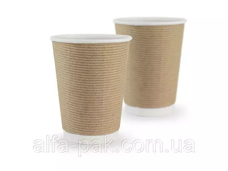 Стакан белый гофрированный бурый 430 мл F-волна горизонтальная