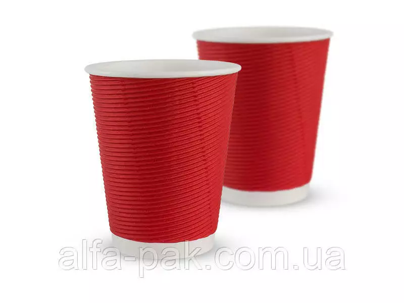 Стакан белый гофрированный красный F-волна горизонтальная, 440