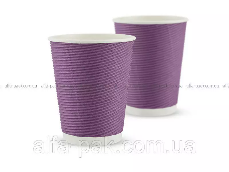 Стакан белый гофрированный лаванда F-волна горизонтальная, 440