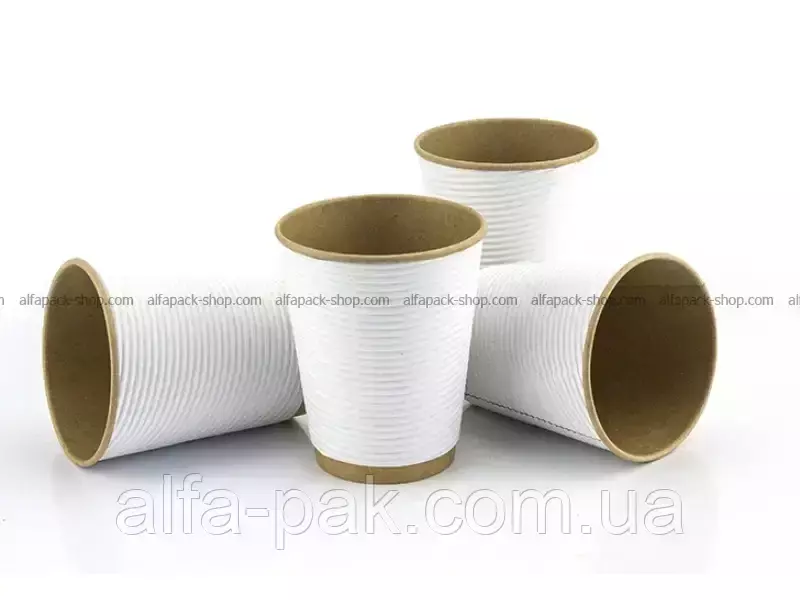 дискомфорта рукам. Стакан крафт гофрированный белый 110 мл F-волна