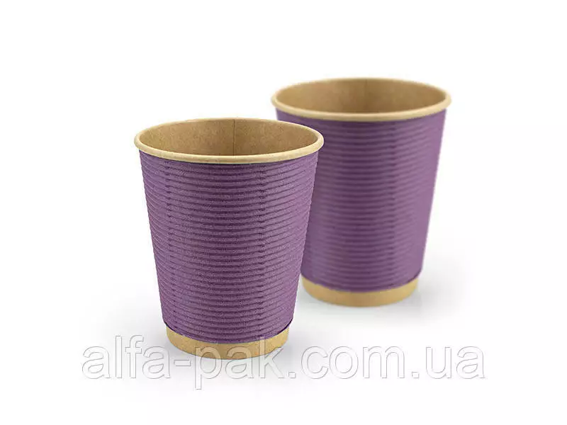 Стакан крафт гофрированный лаванда F-волна горизонтальная, 270