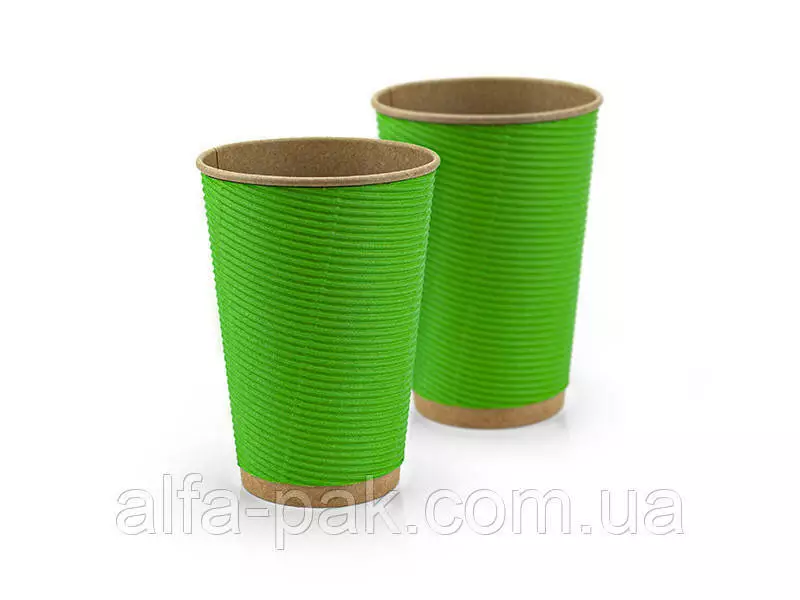 Стакан крафт гофрированный зеленый F-волна горизонтальная, 270