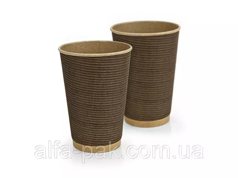 Стакан крафт гофрированный коричневый F-волна горизонтальная, 340