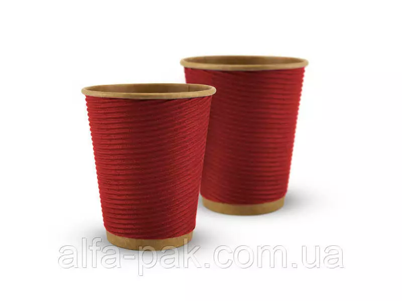 Стакан крафт гофрированный красный F-волна горизонтальная, 180