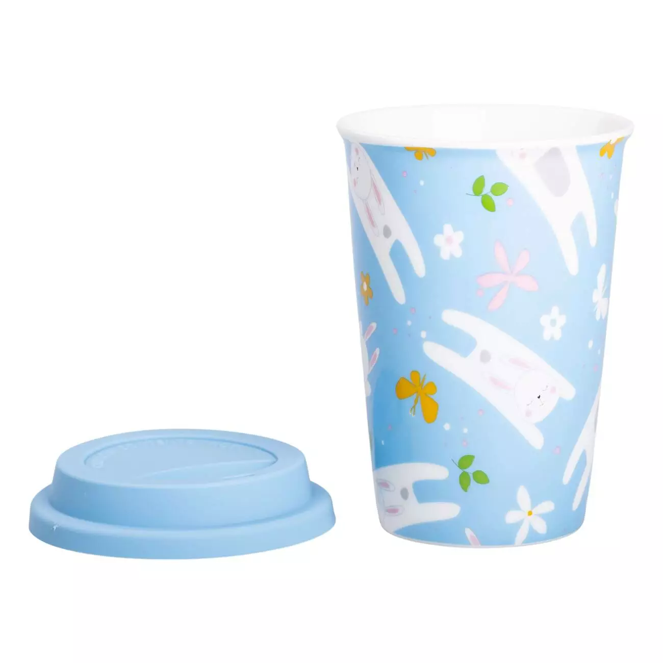 Стакан порцеляновий 420 мл із силіконовою кришкою, блакитний