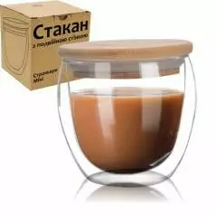 Стакан з подвійною стінкою та бамбуковою кришкою 250ml 201-25
