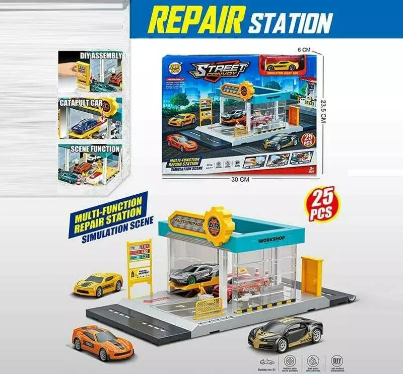 Автомайстерня MH 644 (48/2) металопластикова машинка, 22 елементи, аксесуари, наліпки, в коробці