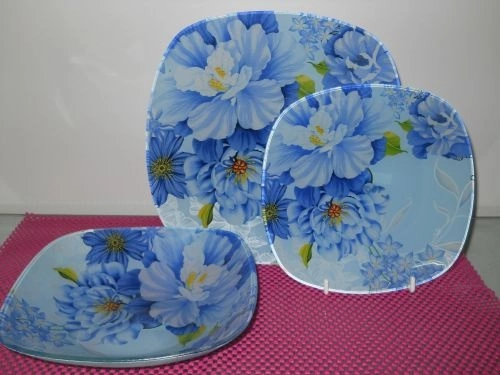 Тарелка 8 мелкая голубой пион