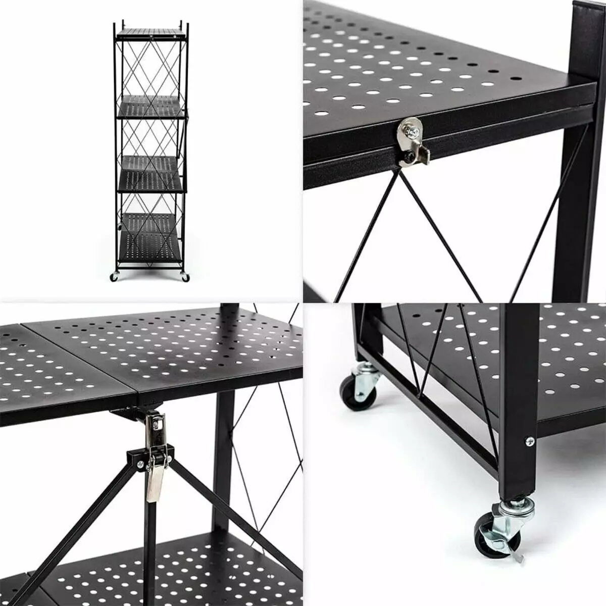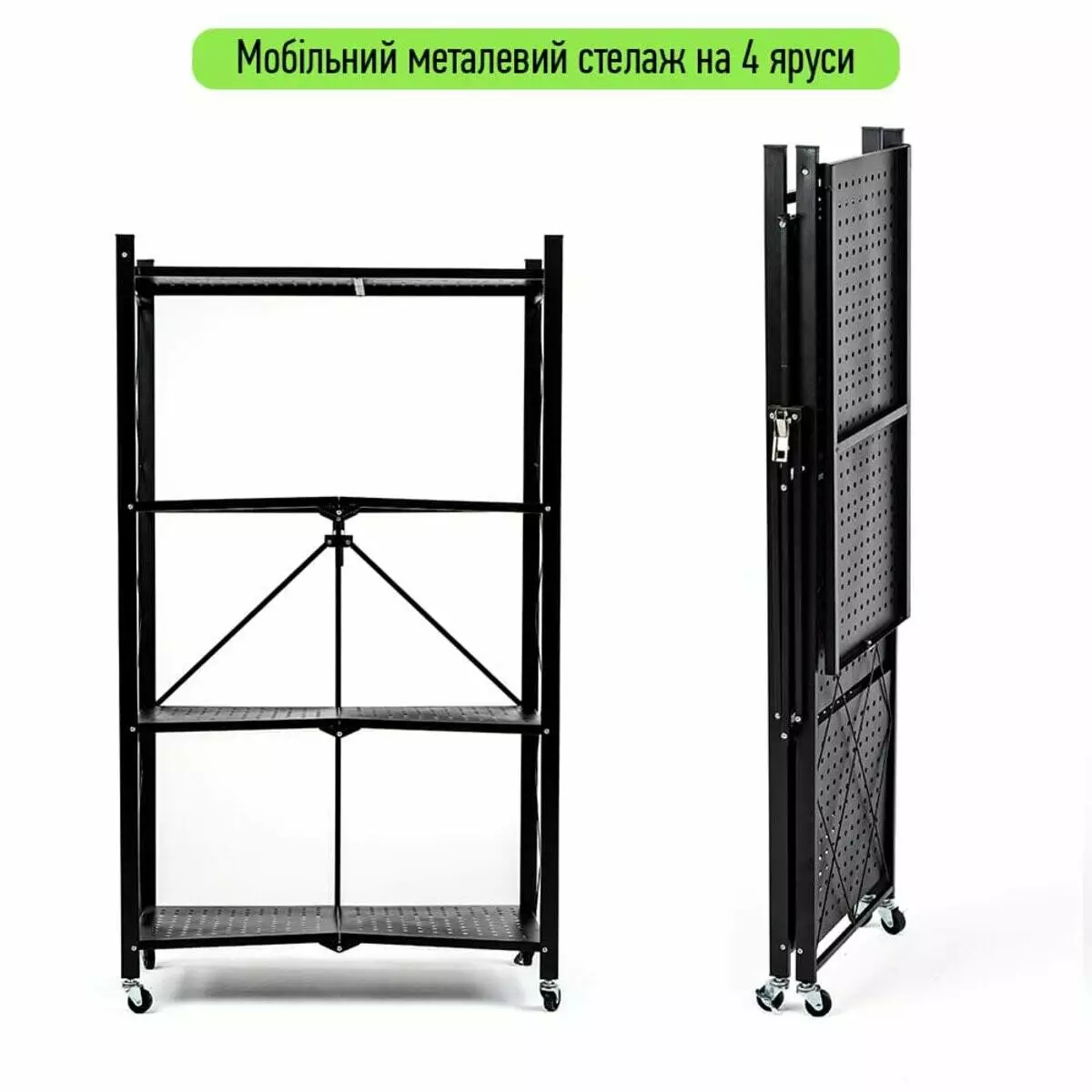 Стелаж мобільний чотириярусний універсальний розкладний з нержавіючої сталі 126х72х34см Чорний SW-00002098