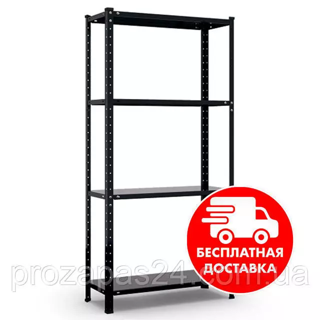 Стеллаж 150х75х30см 4полки металлический полочный крашенный черный