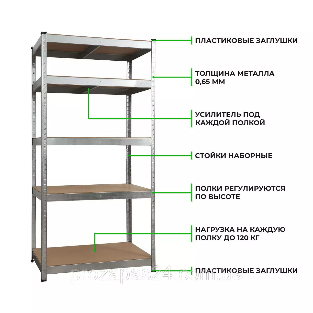 Стеллаж 180х80х60см 5полок металлический полочный оцинкованный сборный