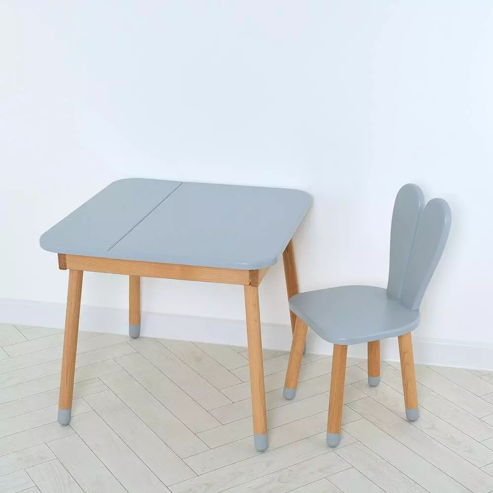 Стіл 04-025GREY-TABLE зі стільчиком, ящик, зайчик, сірий.