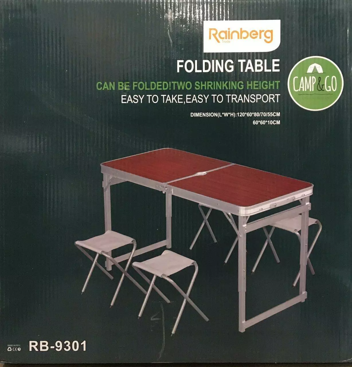Стіл складаний посилений туристичний для пікніка + 4 стільці Rainberg RB 9302 з регулюванням висоти