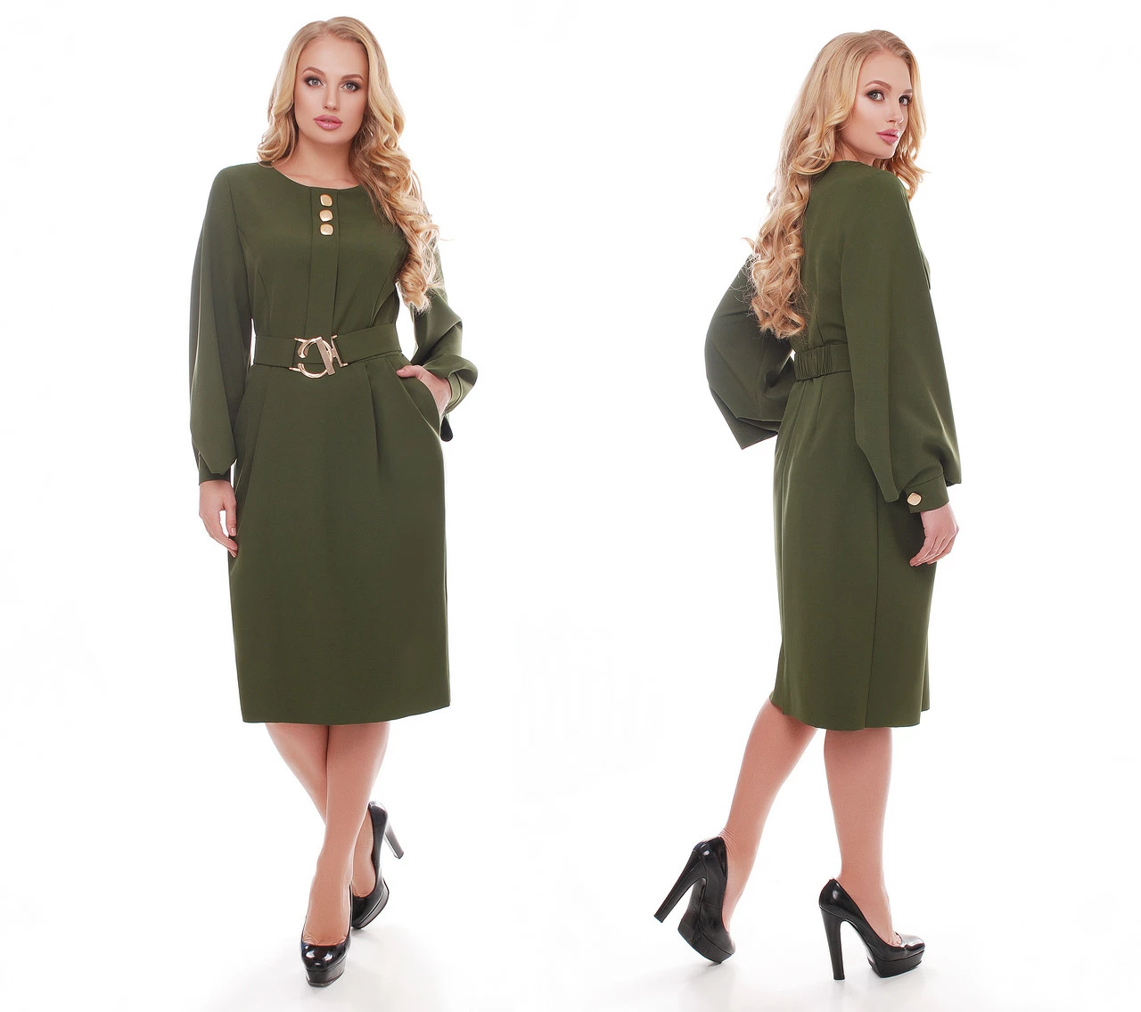 талиевыми выточками. Съемный пояс с центральной застежкой-пряжкой