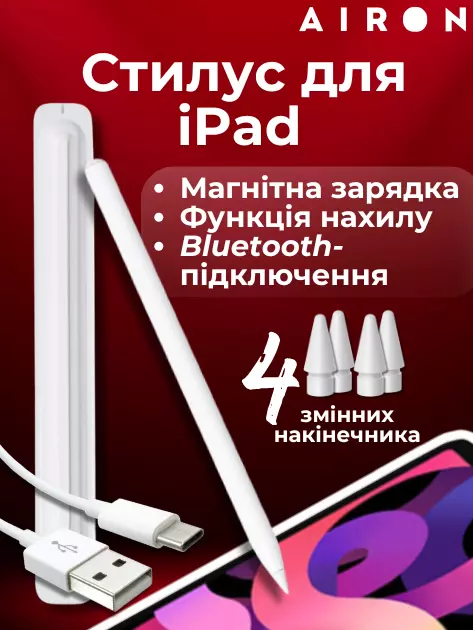 Стилус, зарядный кейс, провод Туре-С, сменный наконечник
