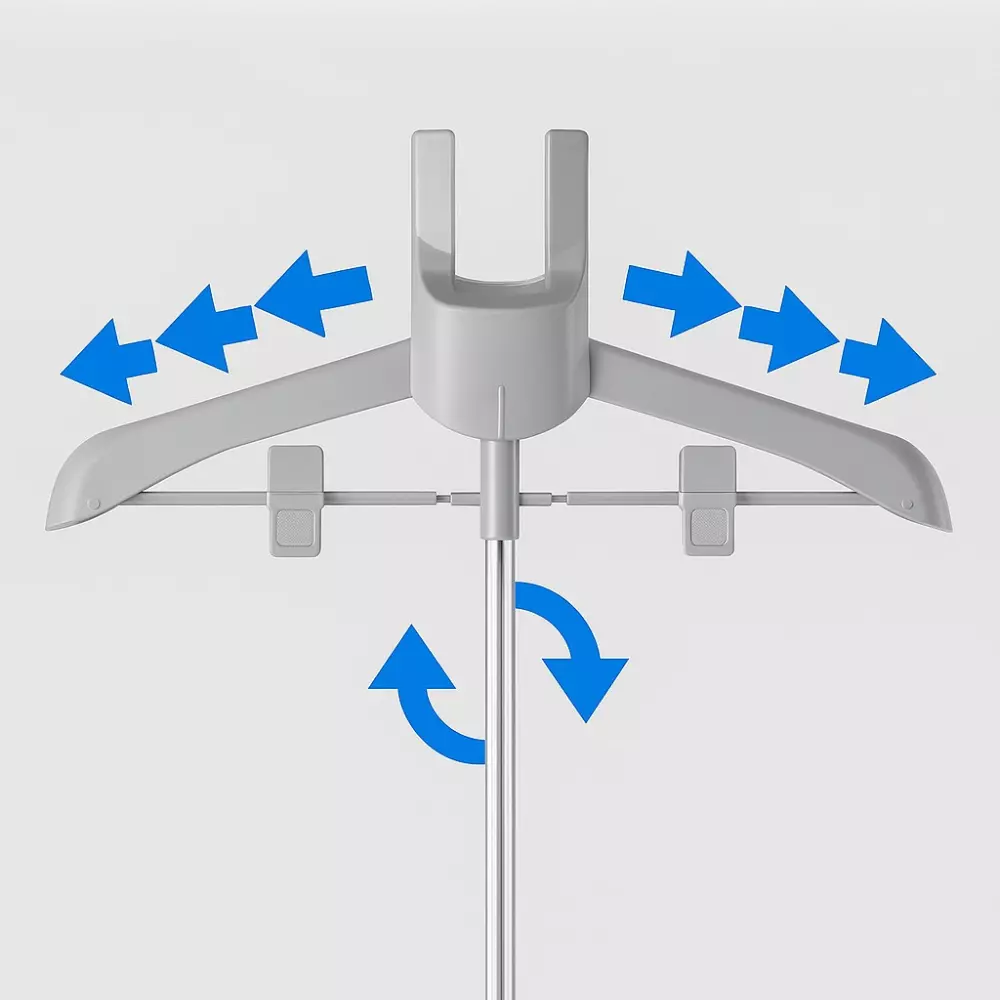 Верхня вигнута вішалка обертається, що дає можливість розташовувати