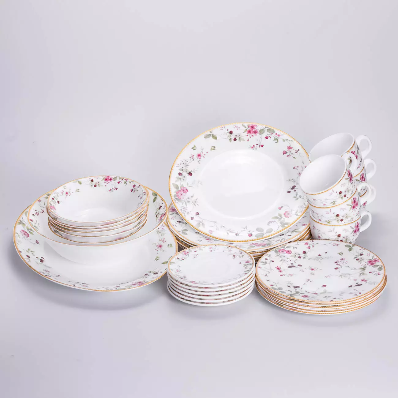 Подаруйте своєму столу витонченість та весняний настрій із цим витонченим фарфоровим сервізом із 32 предметів. Ніжний малюнок з маленькими суничками та делікатне окантування у вигляді тонкого мереживного візерунка створюють легку та романтичну атмосферу – ідеально підійде як для повсякденного використання, так і для святкового столу.