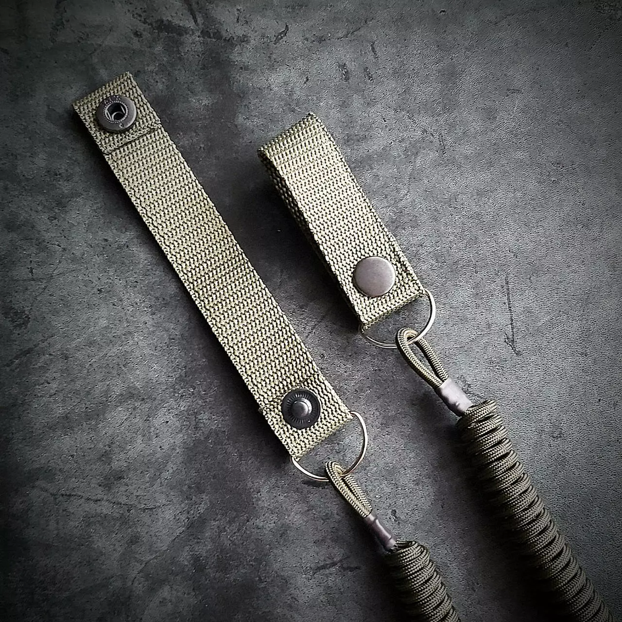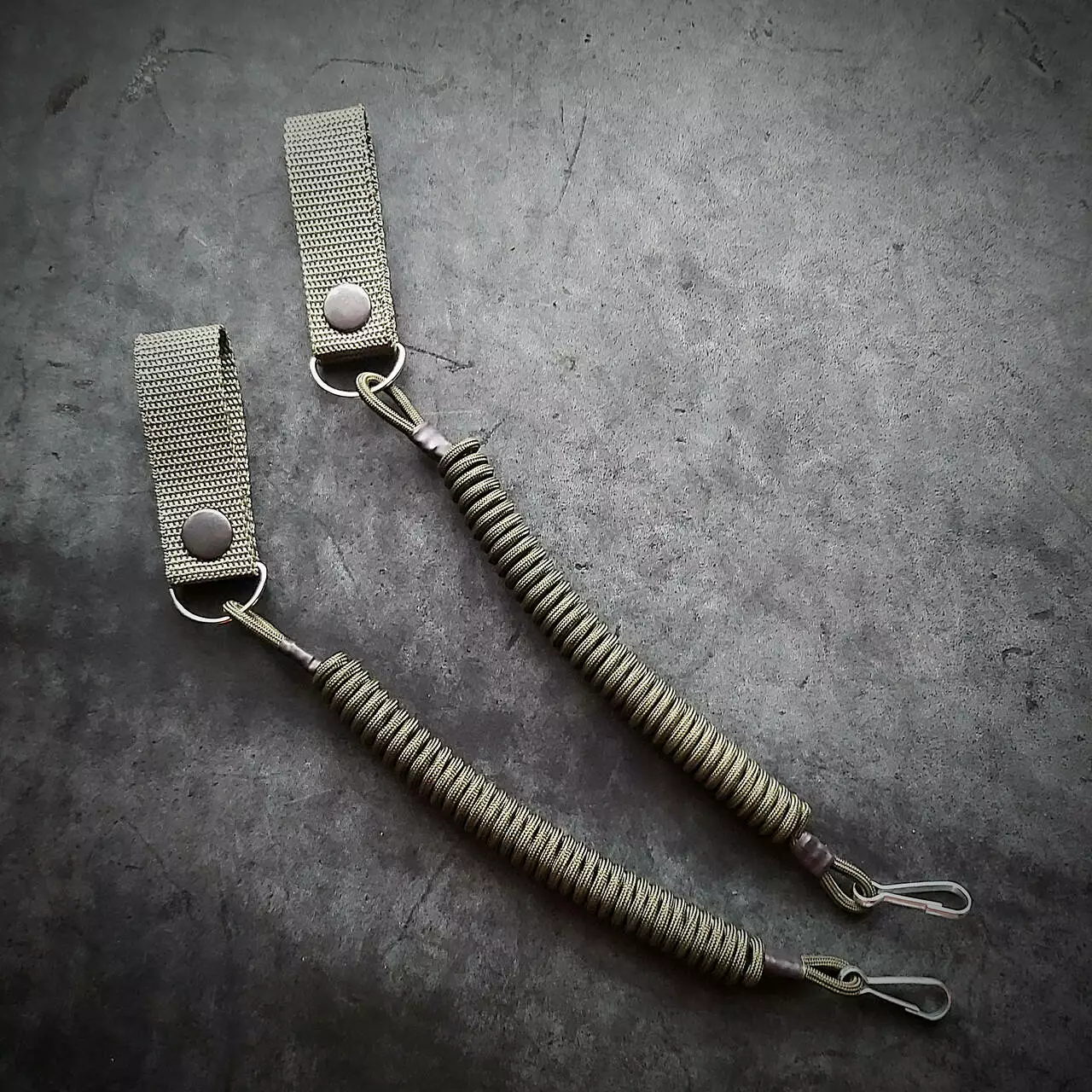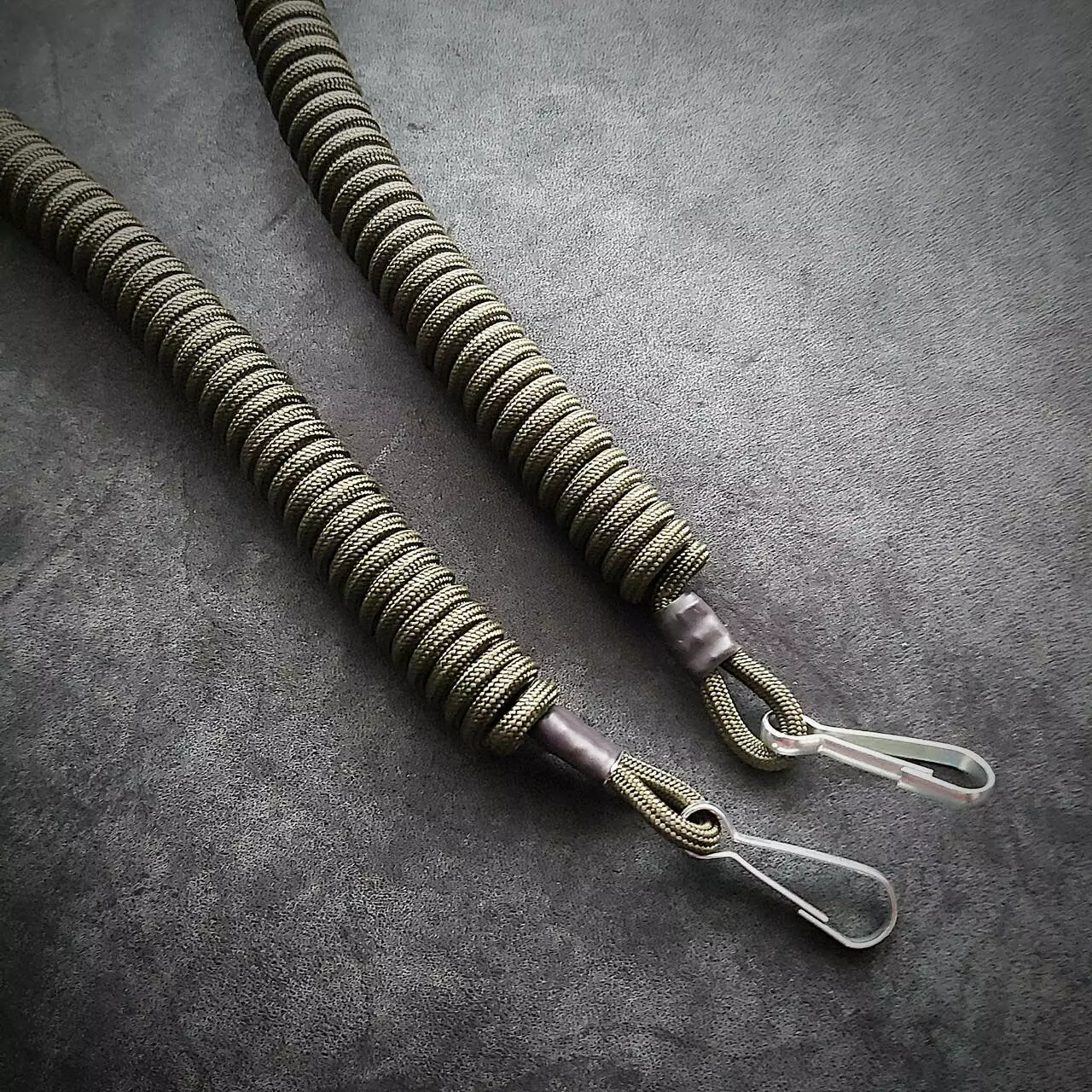 Шнур виконаний із щільного паракорду. Кріпиться на ремінь завширшки 5 см за допомогою петлі на кнопці. Фіксація зброї на металевий карабін. Довжина 30 см/100 см (у розтягнутому стані)