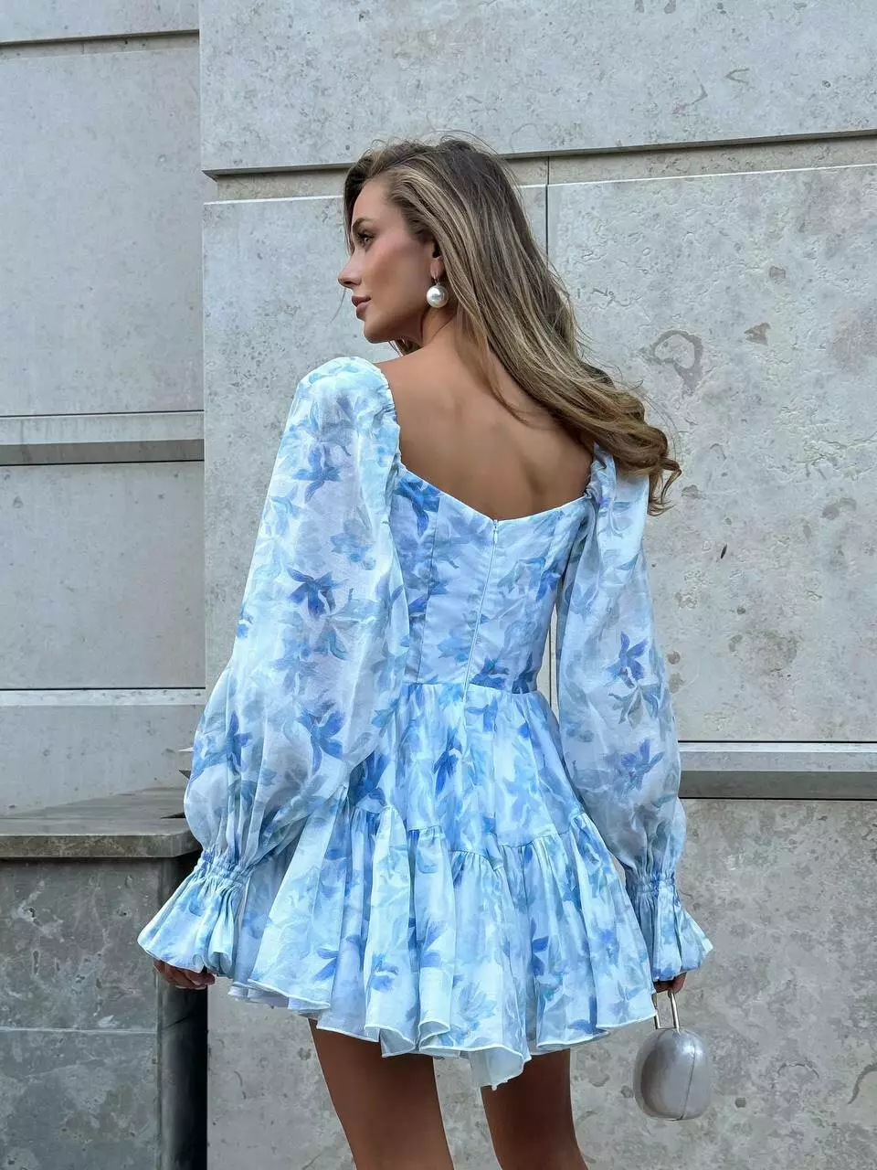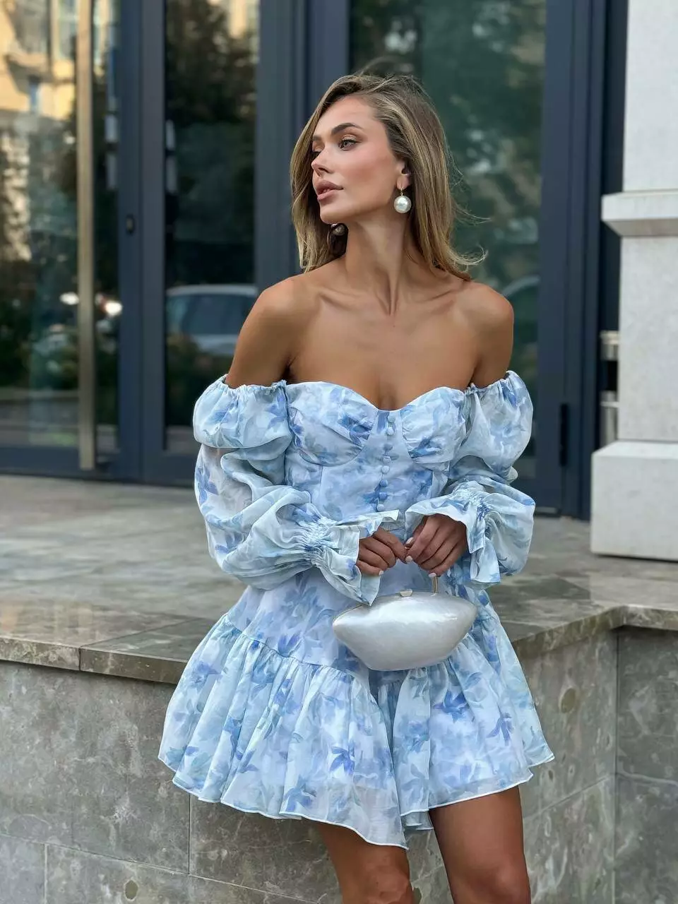 в тканину, з обʼємними рукавами та пишною не симетричною спідницею.