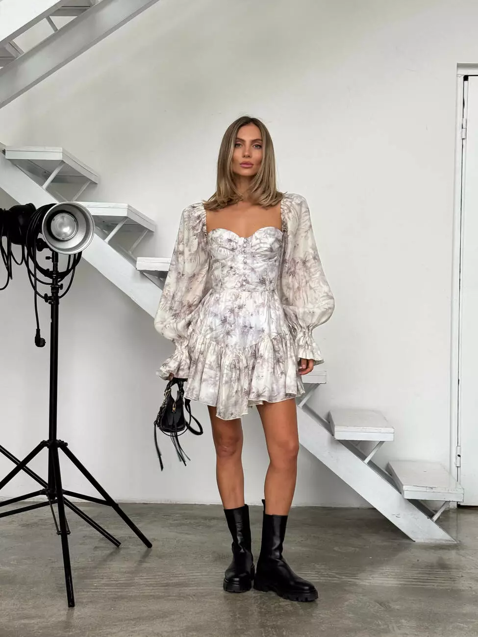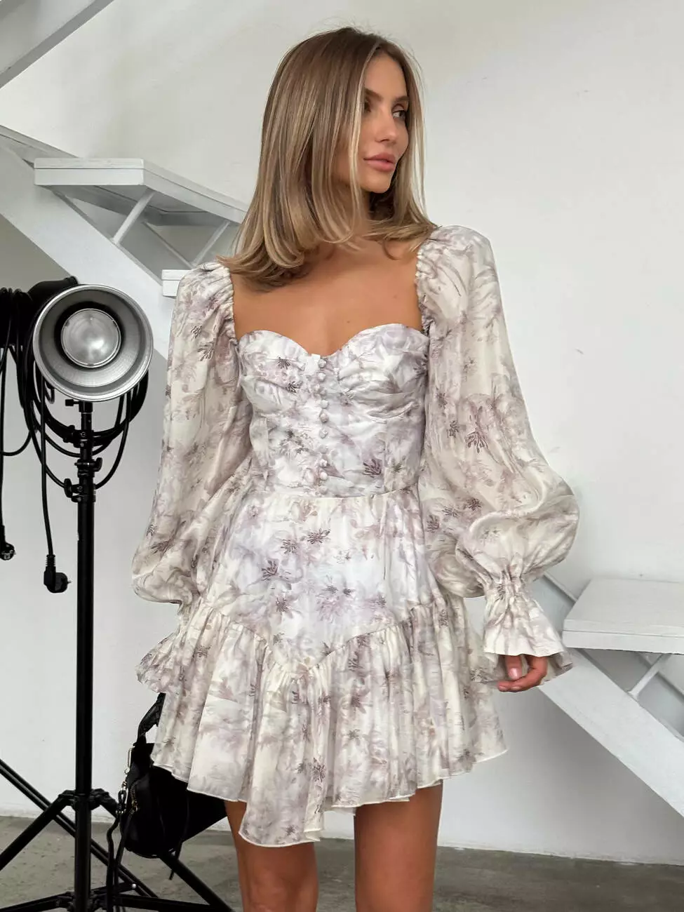 в тканину, з обʼємними рукавами та пишною не симетричною спідницею.