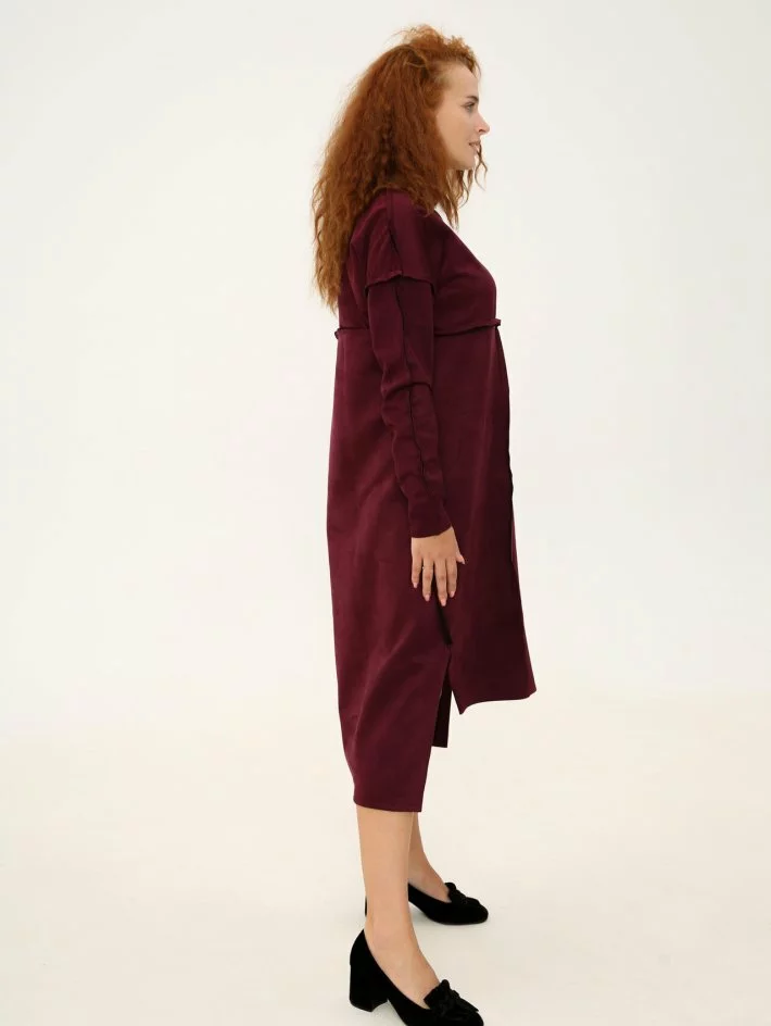 Сукня довжини міді з замшевої тканини. Тканина трохи тягнеться,