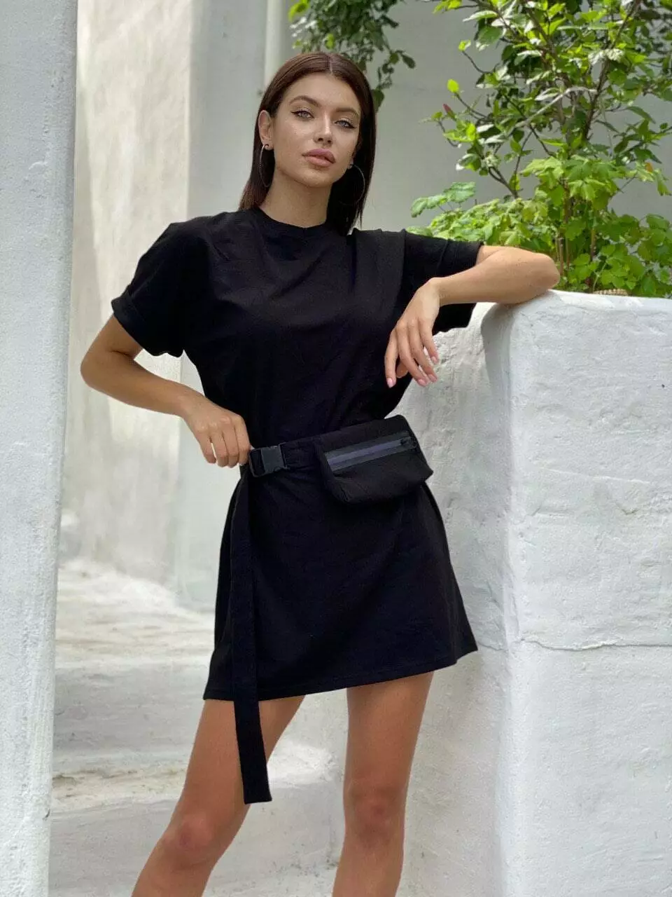 Трикотажное летнее платье из хлопка с поясной съёмной сумкой
