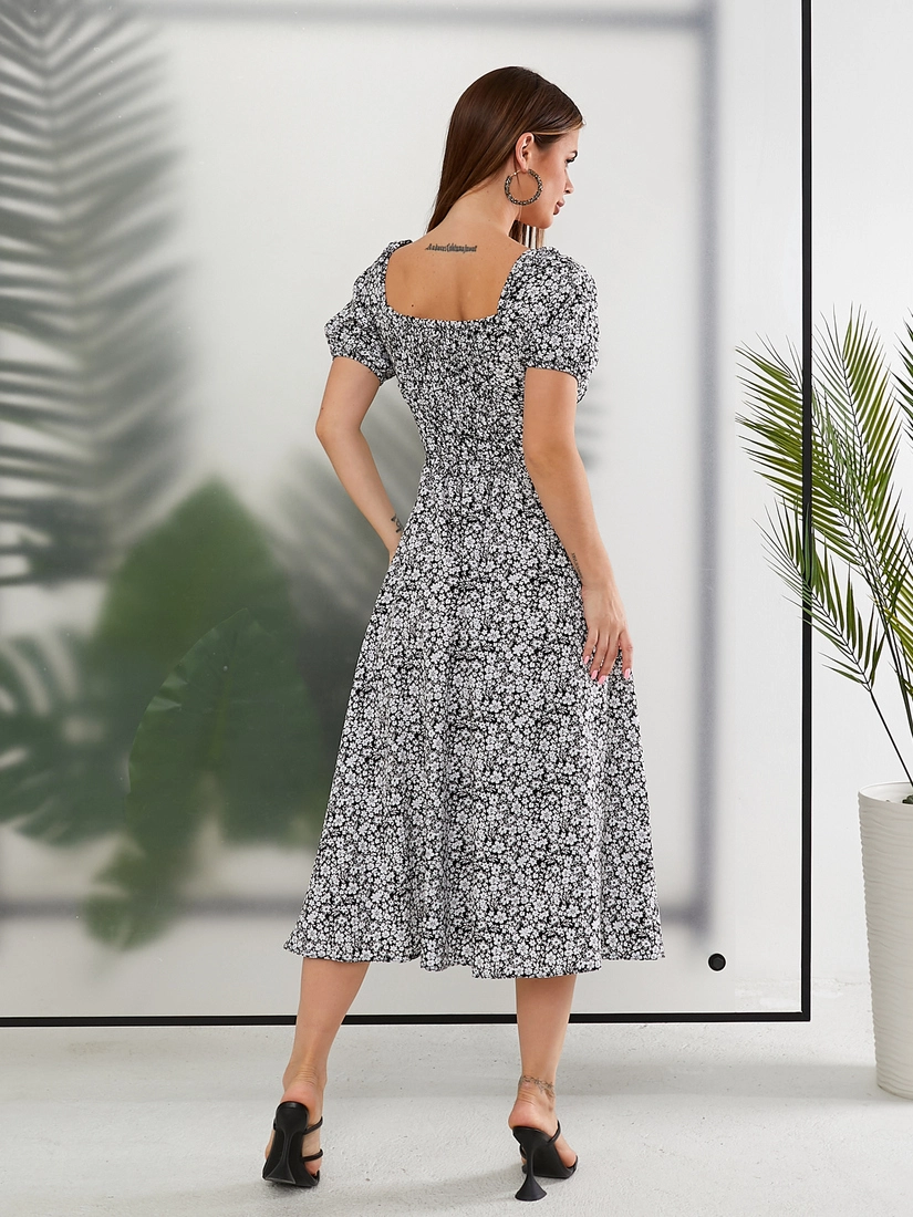 Сукня літня чорного кольору з квітковим принтом та розрізом