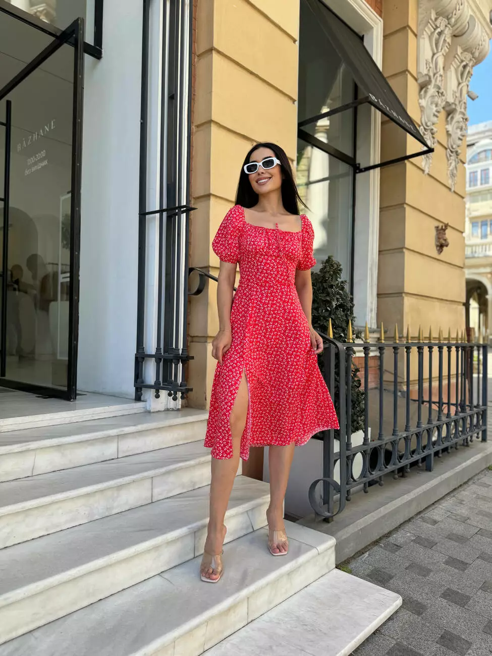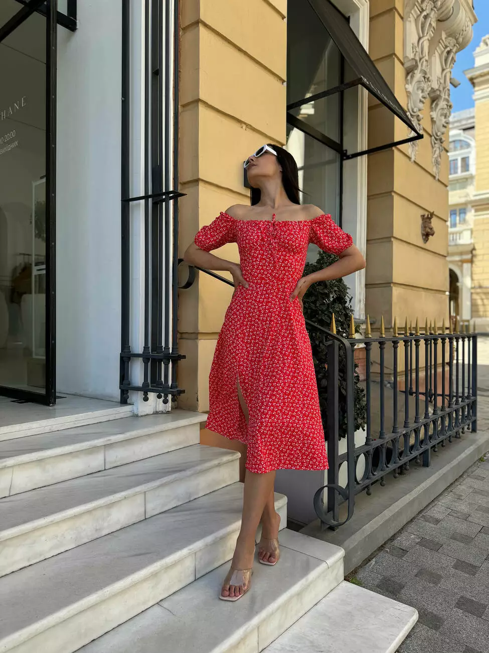 Ззаду по спинці прострочена резинка,що дає змогу легко одягнути сукню