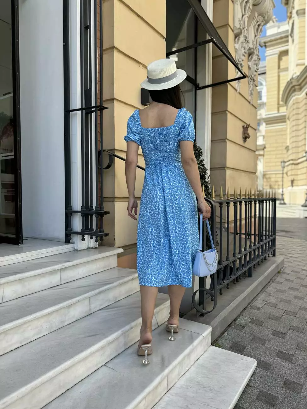 Ззаду по спинці прострочена резинка,що дає змогу легко одягнути сукню
