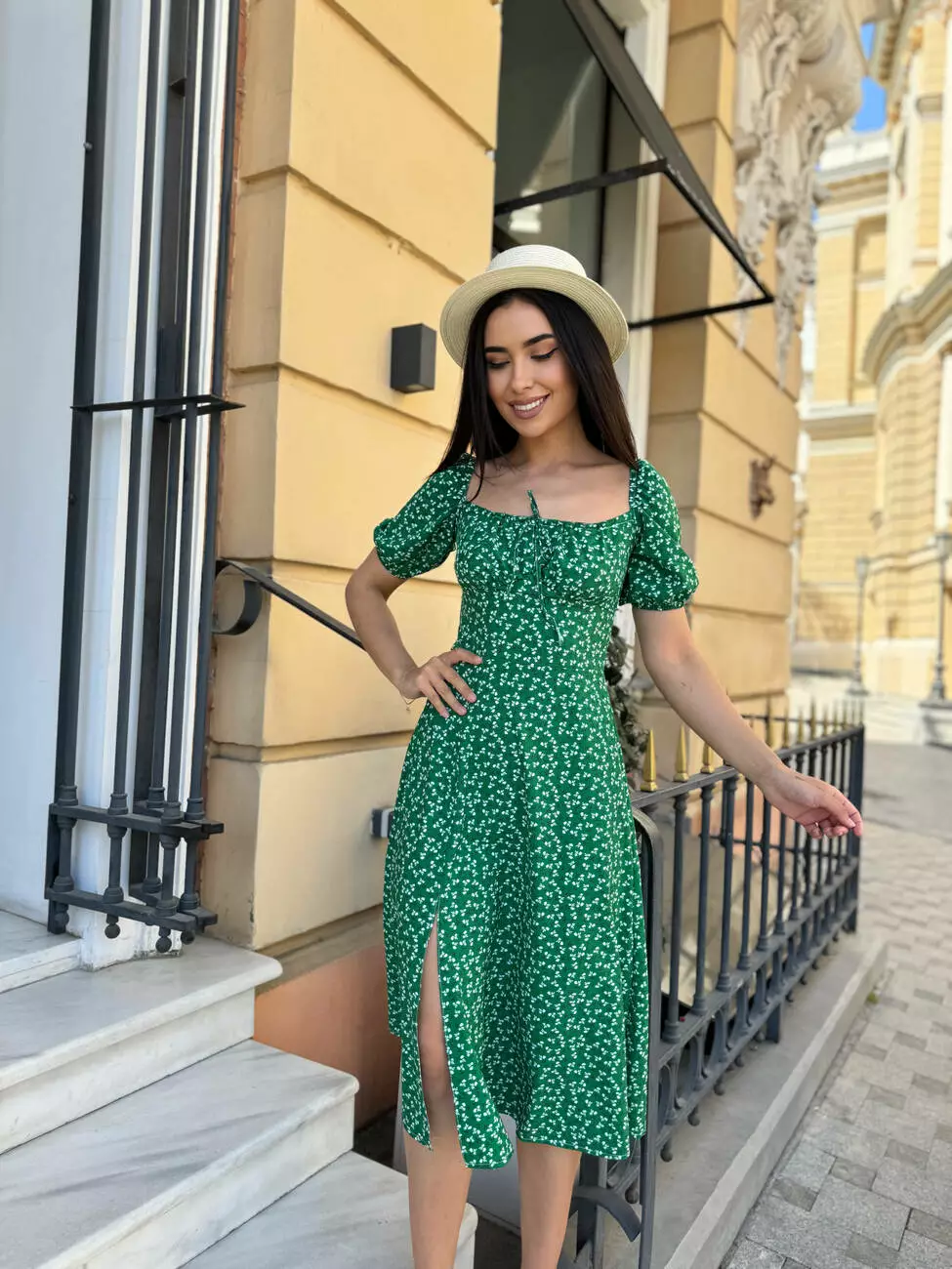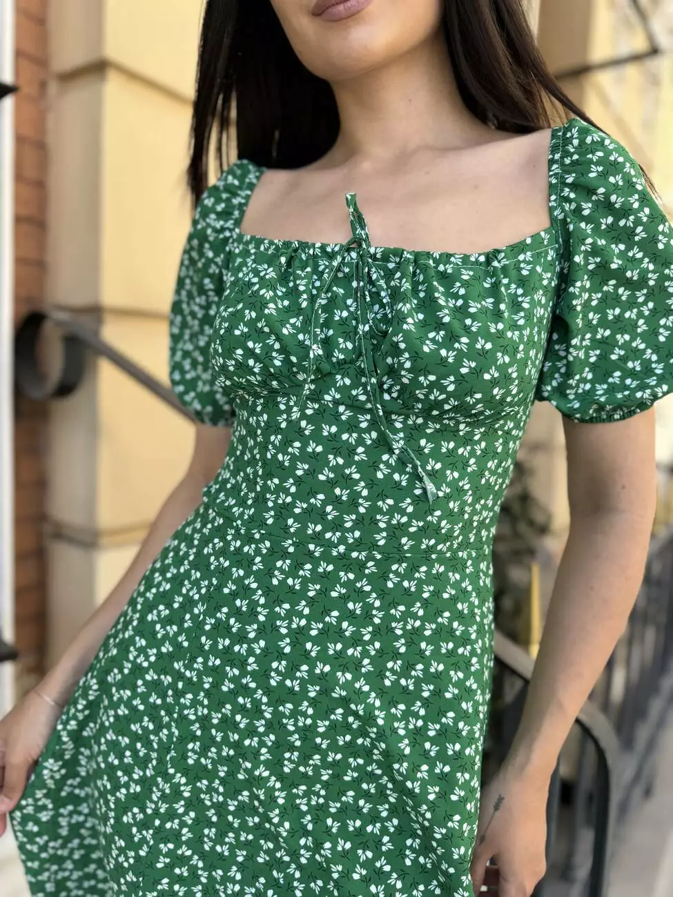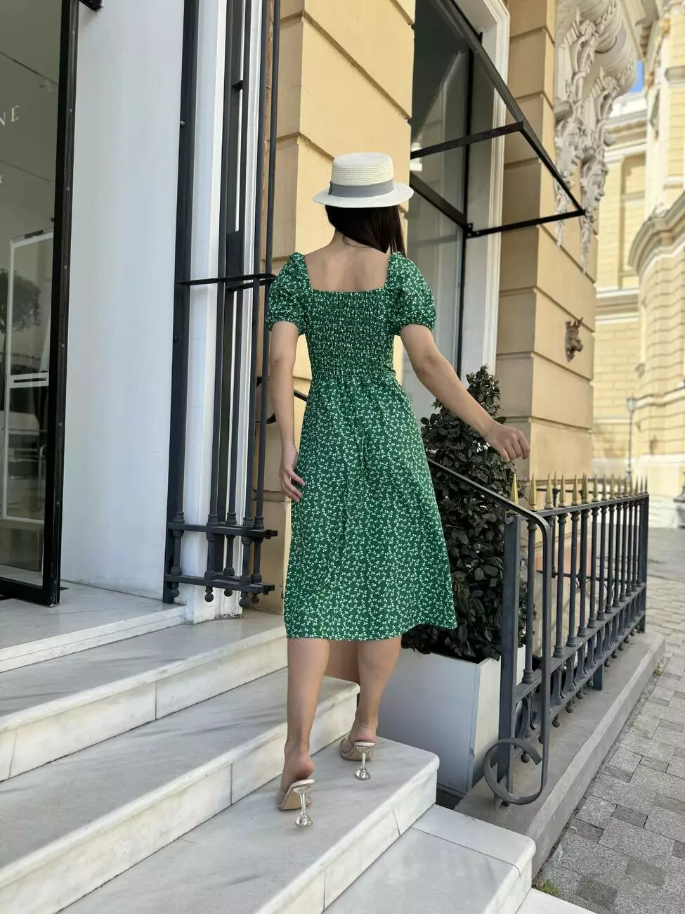 Ззаду по спинці прострочена резинка,що дає змогу легко одягнути сукню