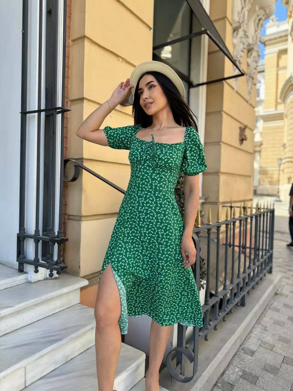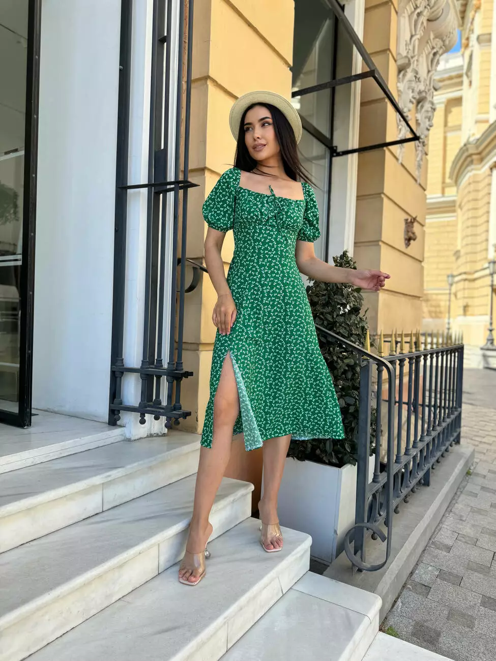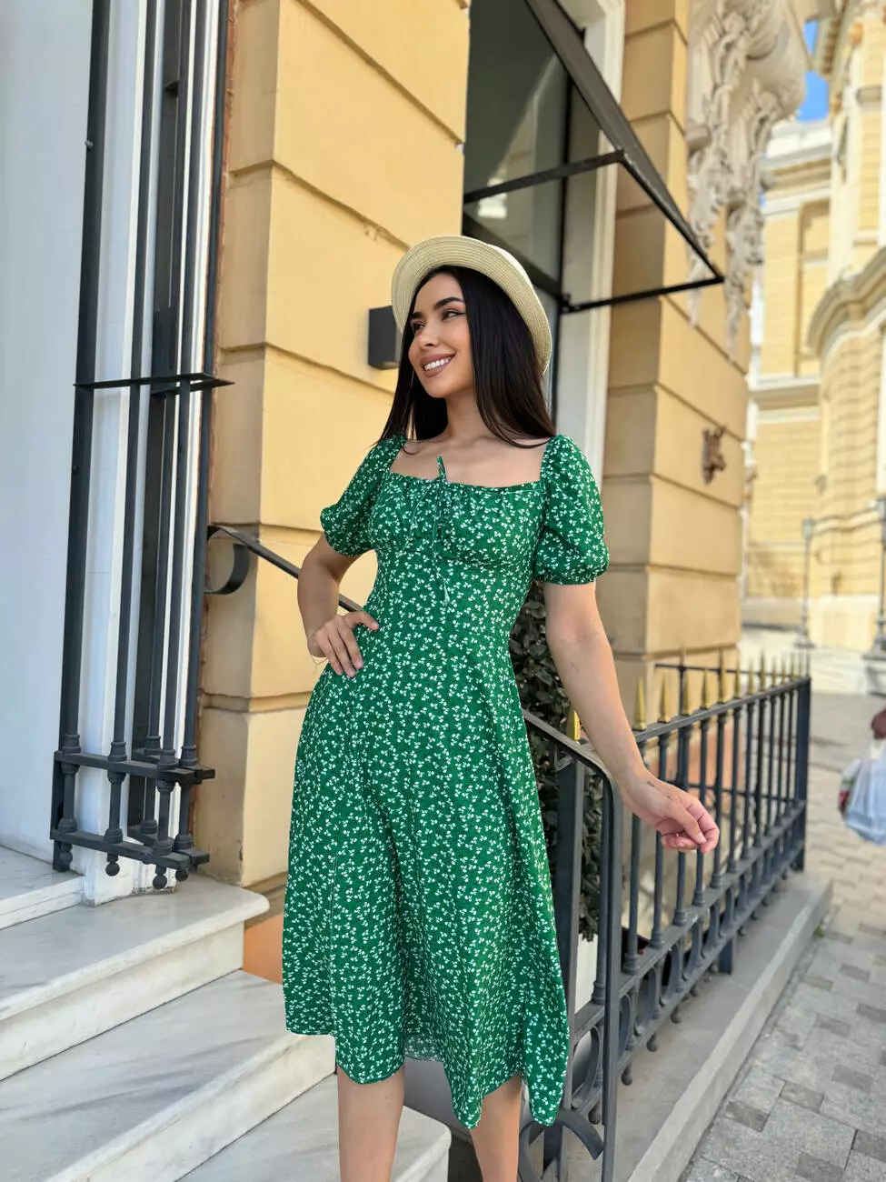 Ззаду по спинці прострочена резинка,що дає змогу легко одягнути сукню