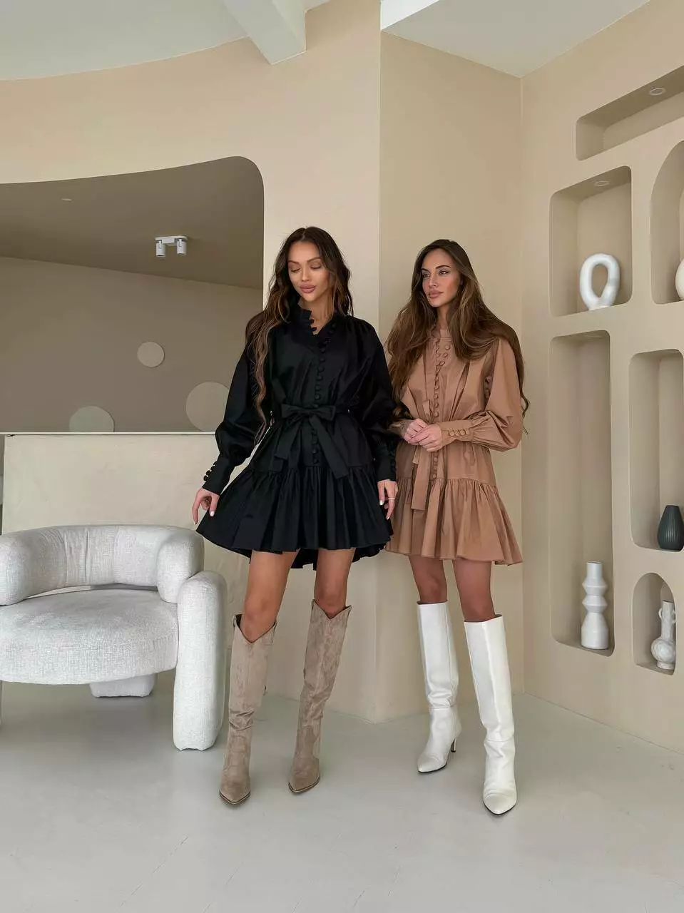 Виконана з якісної бавовняної тканини з безліччю ґудзиків та зборкою по юбці. Пояс в комплекті що легко регулює довжину завдяки напуску.
