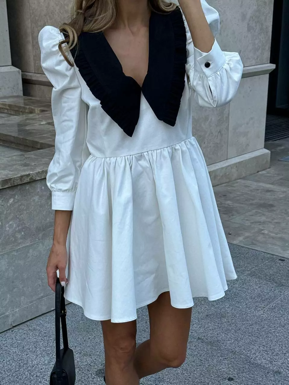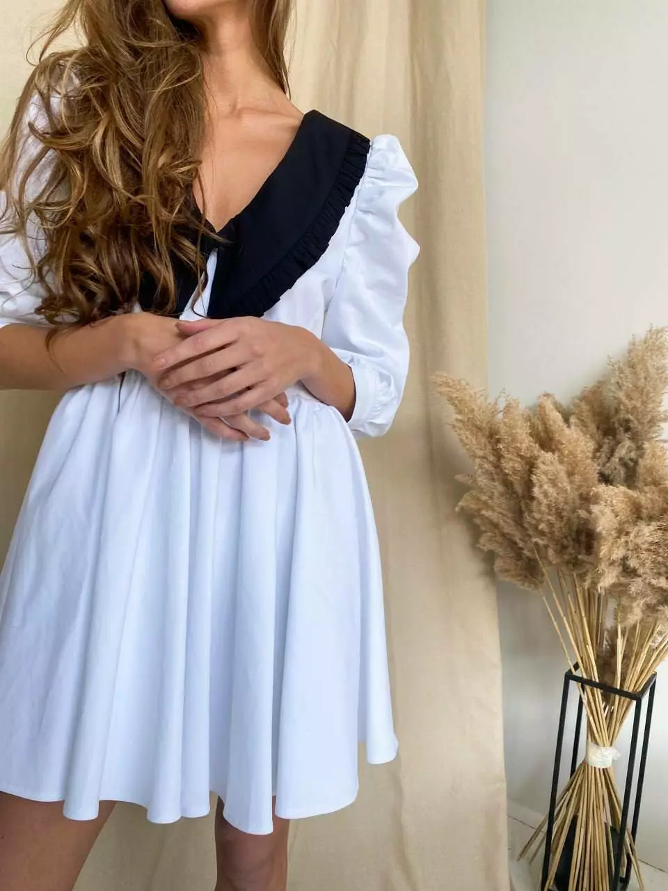 декольте, охайною V-подібною горловиною та знімним білим комірцем