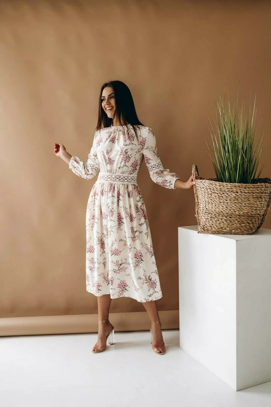 Сукня в квітковий принт з мереживом