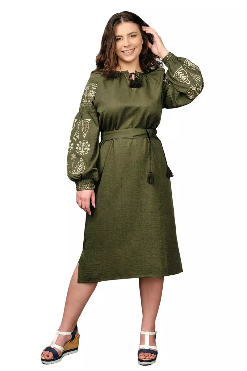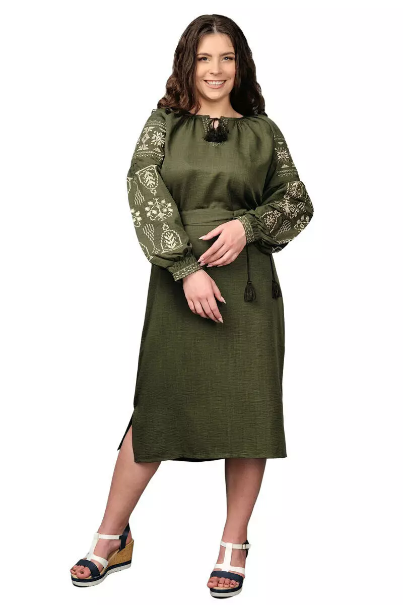 Сукня-вишиванка вироблена з якісних матеріалів. Тканина - льон-штрих приємна на дотик. Ошатні візерунки на рукавах і грудях вишиті машинним способом. Важливо, що навіть після багаторазового прання тканина і вишивка зберігають свої початкові кольори.