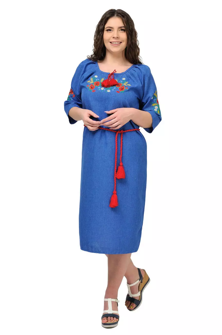 Сукня-вишиванка Маки (джинсовий)