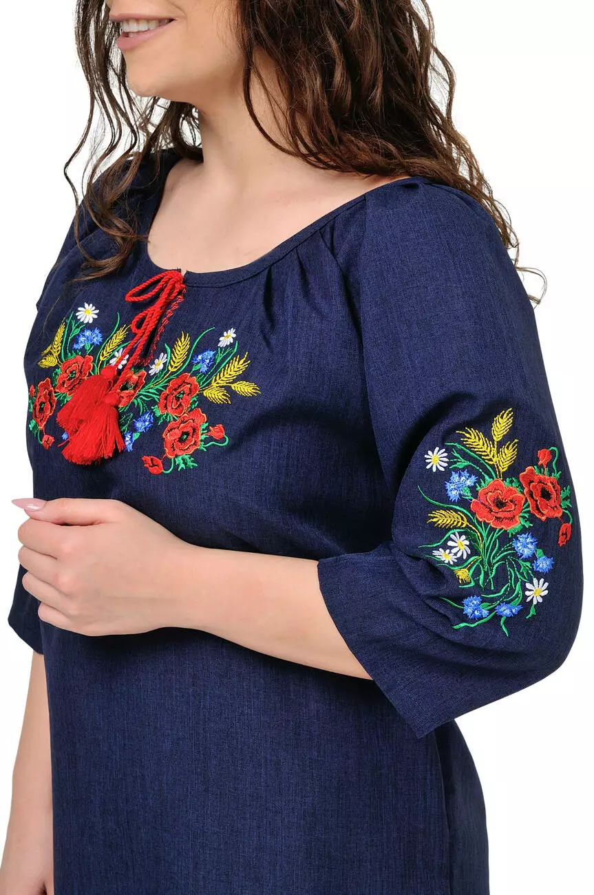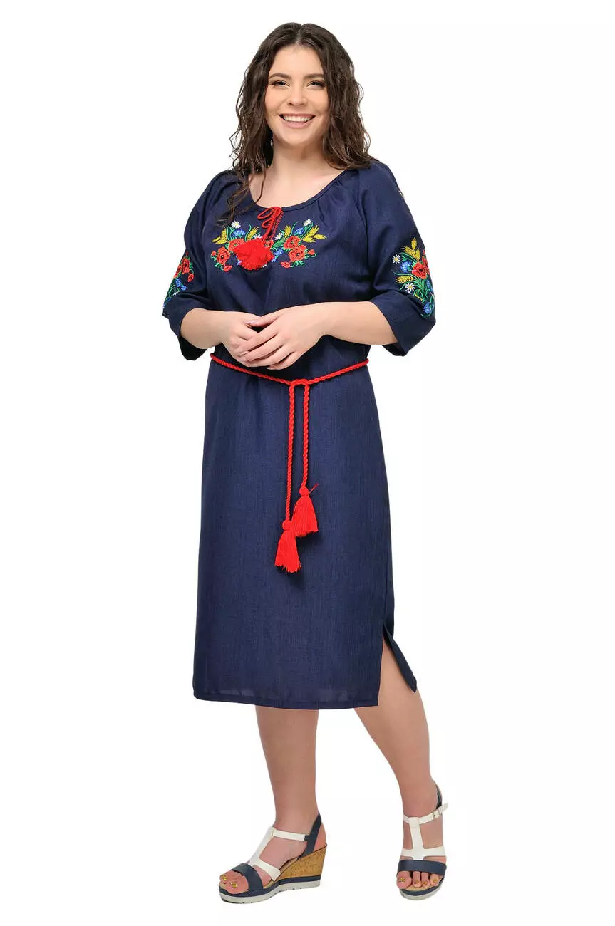 Сукня з яскравою вишивкою Маки (темно-синій)