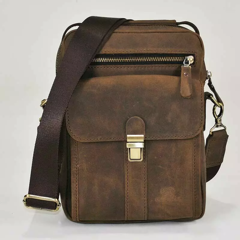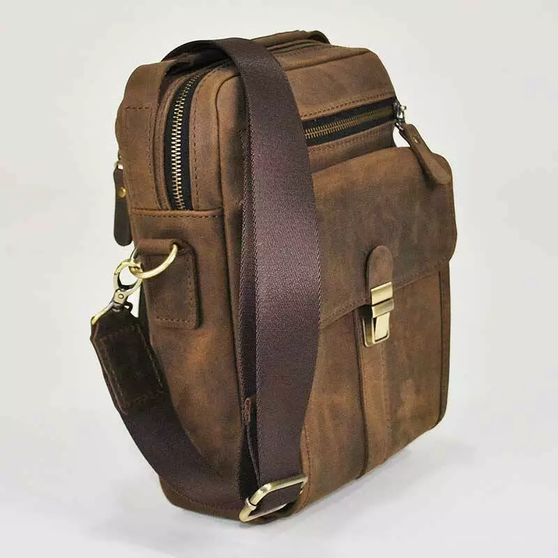 Чоловіча сумка spl-01-02 пошита із натуральної шкіри Crazy Horse коричневого кольору.