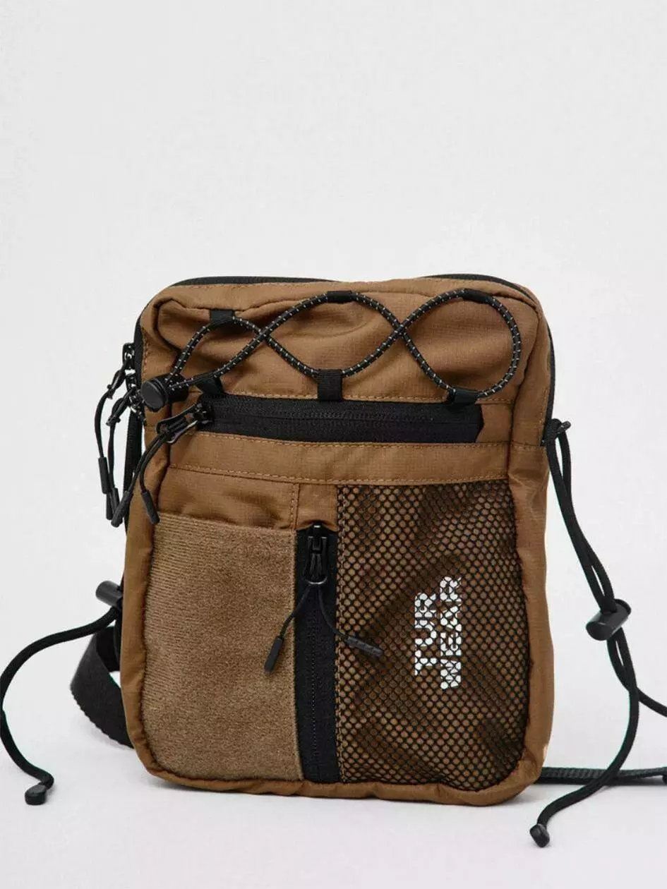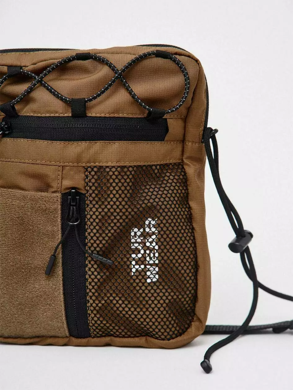 сітки, під якою видніється фірмовий принт білого кольору. Сумка
