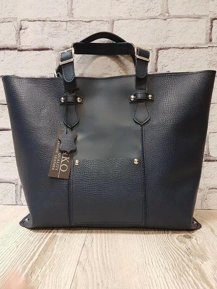 Сумка-шоппер "ЭЛИС" натуральная кожа,темно-синяя с рептилией, на молнии