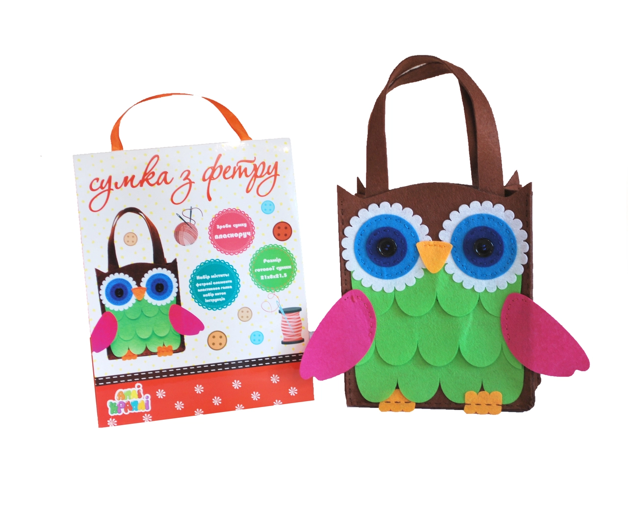 Фетрова сумка "Сова" - це набір деталей з фетру товщиною 1 і 2
